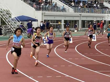 写真は、女子800m決勝での本校生徒の活躍のようすです。
