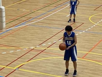 常総運動公園体育館で、愛宕中と1回戦を戦っています。シュートを全員で目指し、頑張っています。応援よろしくお願いします。