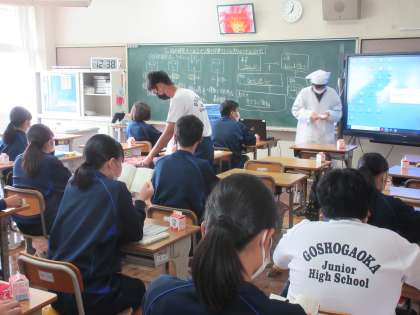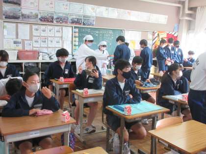 3年生の給食の準備のようすです。落ち着いた雰囲気の中、給食当番を中心に準備が進められています。
