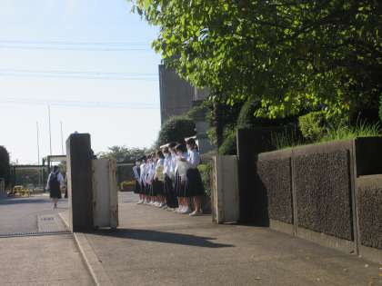 朝の登校時刻を控え、生徒会役員立候補者のあいさつ運動の準備が始まっています。
