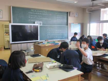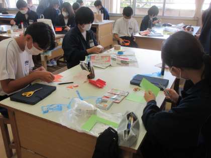 「幼児を楽しませるおもちゃをつくる」を目標に、生徒たちは作業をすすめていました、
