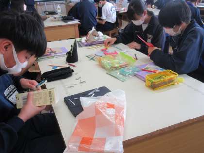 安全、発達段階、そして楽しいものを考慮し、手造りゲーム・おめん・さいころ・・・など、生徒たちは工夫してつくっています。(これから予定されている保育実習が楽しみです。)