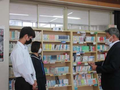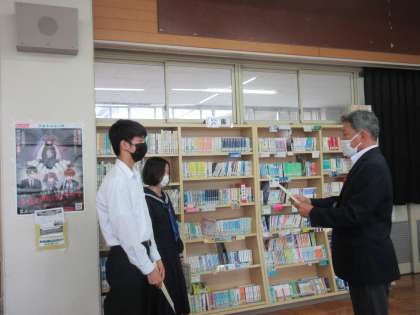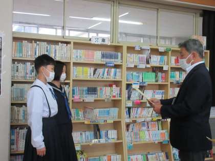 オンラインでの実施になりましたが、図書室では、名前を呼ばれると大きな返事をして前に進む生徒たちの姿を見て、頼もしく感じました。これからも御所ケ丘中の全員で頑張っていきましょう!