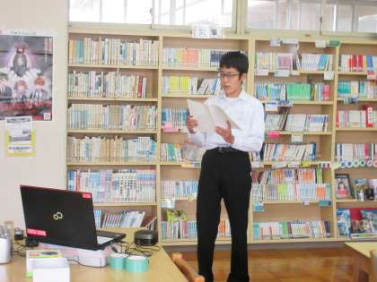 (各学年の代表の生徒の皆さん。発表ありがとうございました。後期に向けて、気持ちを切りかえてやっていこうという思いが伝わってきました。教室で発表を聞く皆さんも、後期に向けての目標をきちんともっているのではないかと思います。充実した後期にしていきましょう。)
