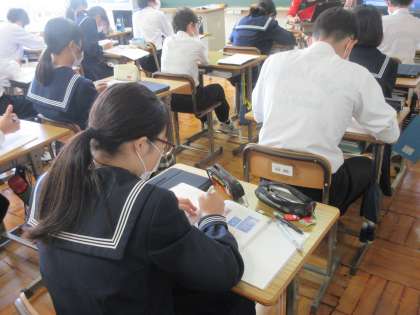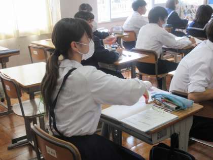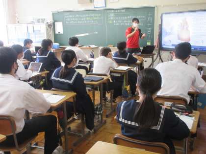 2年生の理科の授業です。心臓はどのように血液を循環させているかについて、学習をすすめています。