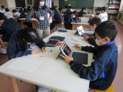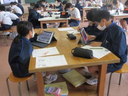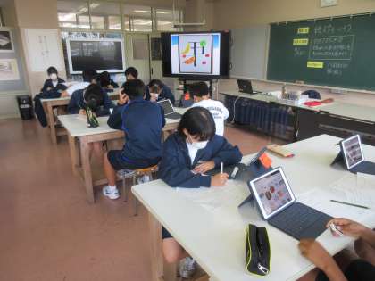 絵文字の作成に向け、一人一人が構想を練っています。1つの漢字から、様々なイメージを膨らませる生徒たち。これからの作品作りが楽しみです。