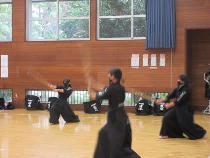 全員で声を出し、基本練習に取り組む剣道部員。一本一本を大切にする姿が見られました。次の目標を見据え、しっかり練習に取り組んでいます。