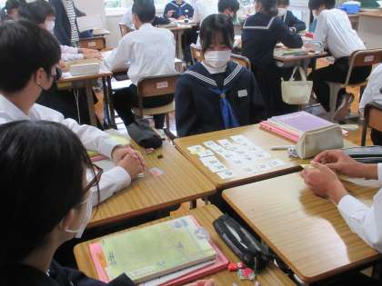 漢文の学習に取り組んでいました。「春眠不覚暁」のそれぞれの漢字カードを活用し、学習を進めています。日本語との違いを考えながら、熱心に学習に取り組む2年生です。