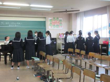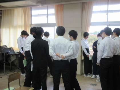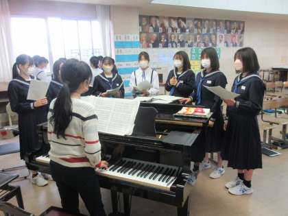 強弱や記号を意識して、合唱の練習に取り組んでいます。(本クラスは「証」の合唱です。)協力して歌う生徒たち。音楽室いっぱいに歌声が響いています。目標に向かって頑張る3年生です。