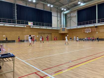 常総運動公園体育館にて、県南新人体育大会 ハンドボールの部の試合が始まっています。男子ハンドボール部が、現在、1回戦に臨んでいます。1点を争う試合を展開しています。応援よろしくお願いします。