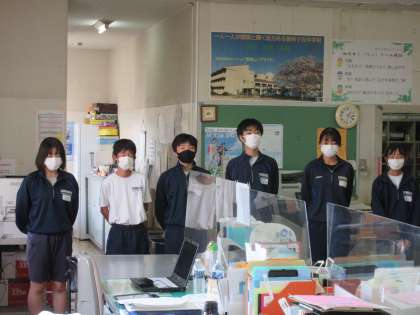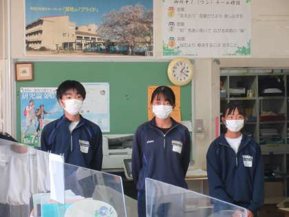 各部活動でやりとげたこと、課題となったことなどを職員室の先生方の前で話してくれました。少し、緊張しながらもしっかりと結果を報告してくれた生徒たち。これからも各部活動でのリーダーとして活躍してくれることでしょう。
