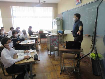 「平面上の位置を表すには?」という課題のもと、座標・座標軸・原点・・・などの数学用語を活用しながら、学習に取り組んでいます。座標は、正確な位置を表すことを生徒たちはイメージできたようです。