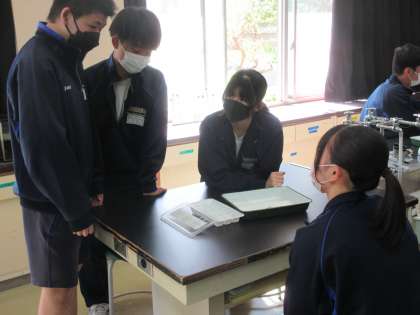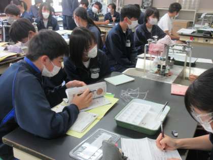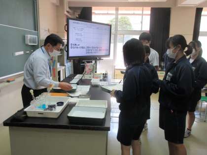 金属イオンについて学習をしていました。ちょうど理科室を訪問した時は、実験が終わったところでした。グループごとに協力して実験の結果が出たようです。(片付けもきちんと行っていました。)これから、考察やまとめをみんなで取り組んでいくことでしょう。。