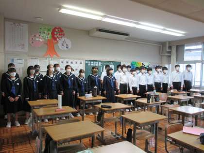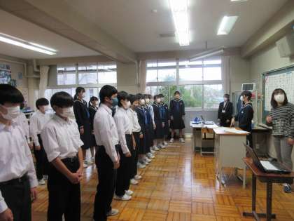 10月24日(月)朝のようす その2 公開日 2022/10/24 更新日 2022/10/24 お知らせ 今日から始まった朝の合唱練習。各クラスで、担任の先生と一緒に真剣に練習に取り組む生徒たちの姿が見られました。今日は2年生の各クラスのようすをお伝えします。