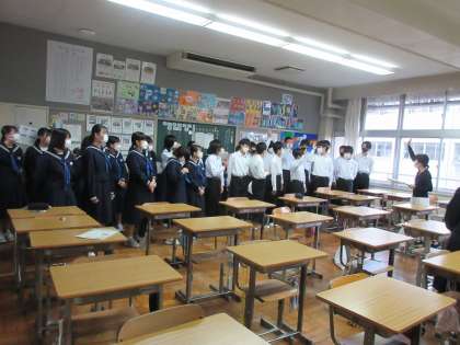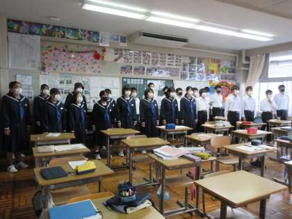 10月24日(月)朝のようす その3 公開日 2022/10/24 更新日 2022/10/24 お知らせ 2年生の各教室から、すてきな歌声が響いています。ここからの練習が大切です。 クラスの仲間で協力しながら、よりよい合唱を創りあげていってほしいです。