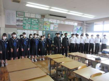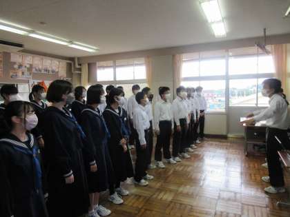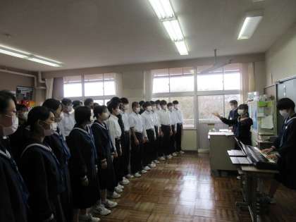 10月25日(火)朝のようす その2 公開日 2022/10/25 更新日 2022/10/25 お知らせ 朝の時間を活用した合唱コンクールの練習も2日目になりました。3年生の教室では、それぞれのクラスごとの特徴を生かした練習に取り組んでいます。パートごと歌声が響き、すてきなハーモニーとなっています。より高い目標に向かって、全員が協力している姿が各教室で見られています。