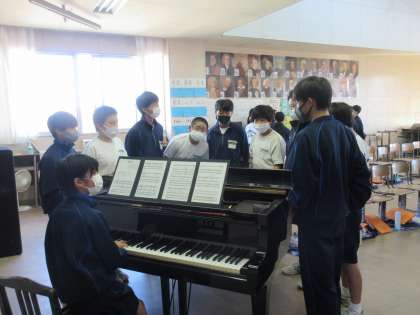 10月31日(月)授業風景 その4 公開日 2022/10/31 更新日 2022/10/31 お知らせ 1年生の音楽科の授業です。 本クラスは、合唱曲「変わらぬもの」のパートごとの練習に取り組んでいます。音楽の担当の先生との練習にも力が入っています。水曜日の本番に向けて、まだまだ伸びていきそうです。