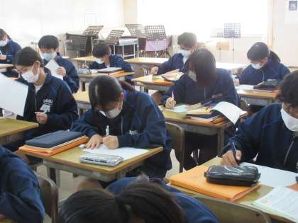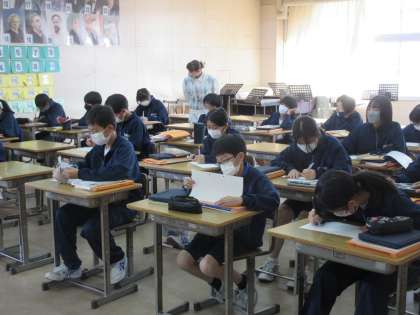 11月18日(金)授業風景 その9 公開日 2022/11/18 更新日 2022/11/18 お知らせ 1年生の音楽科の授業です。 「情景を思い浮かべながら思いを込めて歌おう」という課題のもと、「赤とんぼ」の模範歌唱を鑑賞し、思いや意図を一人一人が考えています。考えたことがこの後、一人一人の歌に生かされていくことでしょう。