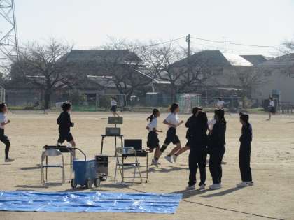 11月22日(火)授業風景 その3 公開日 2022/11/22 更新日 2022/11/22 お知らせ 2年生の体育科の授業です。 体育館の空調設備工事がもう少しで終わりますが、現在は、外での活動が中心です。今日は、インターバルトレーニングにチャレンジです。みんなで声をかけ合い、頑張っていました。