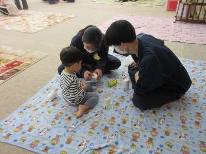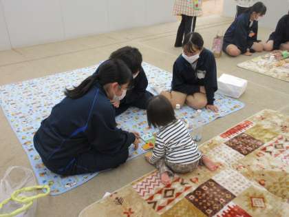 11月22日(火)3年生保育実習 その4(アネシスナーシング保育園にて) 公開日 2022/11/22 更新日 2022/11/22 お知らせ 3年2組の生徒たちは、二手に分かれ、アネシスナーシング保育園でも活動をしています。 小さな子供たちが楽しめるように工夫して活動していました。