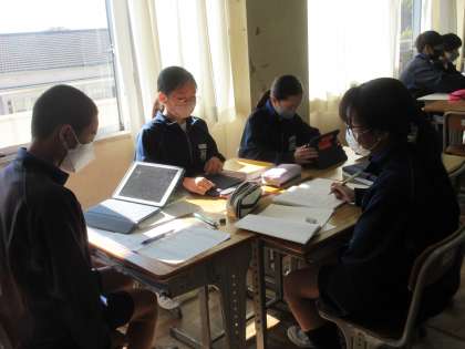 まとめる際の、キーワードが黒板には示されており、生徒たちは、参考にしながらまとめていました。ハイテク産業・プランテーション・レアメタル・・・など、グループで確認しながら、アジア州のイメージを広げていました。