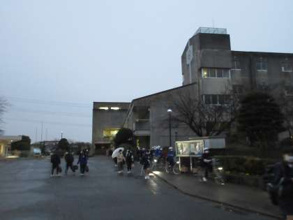 12月5日(月)下校のようす 公開日 2022/12/05 更新日 2022/12/05 お知らせ どんよりした雲が広がる寒い1日でした。部活動を終え生徒たちが帰宅する頃には、暗くなっていました。そのような中でも元気にあいさつをして下校する生徒たち。 明日も頑張っていきましょう!