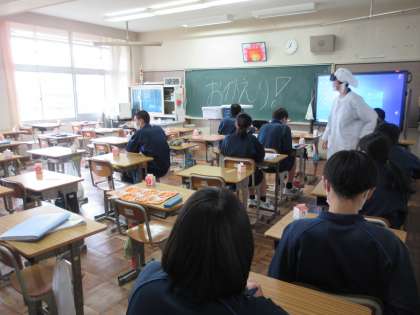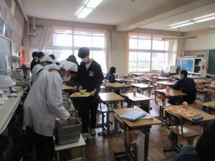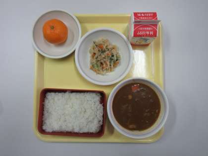 12月6日(火)今日の給食 公開日 2022/12/06 更新日 2022/12/06 お知らせ 今日の給食のメニューは、ごはん・牛乳・冬野菜のチキンカレー・水彩と大根のサラダ・みかん です。 3年2組の教室では、当番が積極的に取り組み、準備がスムーズに進められているようすが見られました。3年生の協力体制。ばっちりですね! 今日もおいしく給食をいただきました。