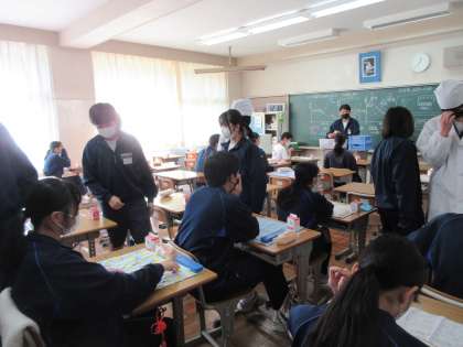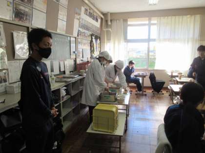 12月7日(水)今日の給食 公開日 2022/12/07 更新日 2022/12/07 お知らせ 今日の給食のメニューは、ミルクパン・牛乳・鶏肉のバジルソース・ニョッキのミートソース・たまねぎとキャベツのコンソメスープ です。 3年3組の教室の準備のようすを見に行くと、係の生徒の進行で、クラス全員で協力して準備に取り組む姿が見られました。みんなで力を合わせる姿勢、いいですね! 今日もおいしく給食をいただきました。