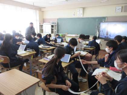 12月7日(水)授業風景 その4 公開日 2022/12/07 更新日 2022/12/07 お知らせ 2年生の保健体育の授業です。 応急手当の意義と方法の学習に取り組んでいます。この時間は「包帯」の巻き方について学習をすすめています。何かあった時に、応急手当は「知っている」と「知らない」では大きな違いがでます。自分で実際に包帯を巻く経験、大切ですね!
