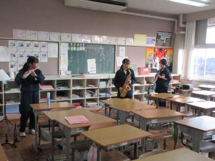 12月7日(水)放課後のようす(吹奏楽部) 公開日 2022/12/07 更新日 2022/12/07 お知らせ 吹奏楽部は、県アンサンブルコンテストやソロコンテスト、3月に行われるスプリングコンサートに向け、活動をすすめています。グループごとに気持ちを合わせ、素敵な演奏を響かせていました。一人一人が目標に向かって、日々努力を重ねています。