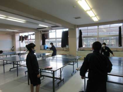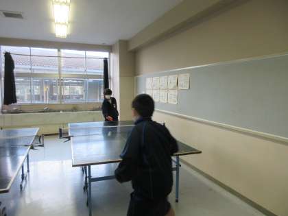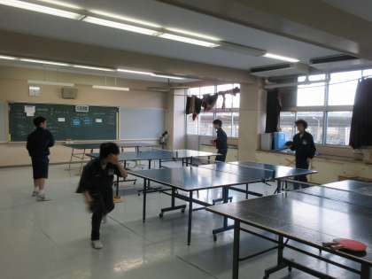12月7日(水)放課後のようす(男子卓球部) 公開日 2022/12/07 更新日 2022/12/07 お知らせ 特活室では、男子卓球部の生徒が練習に取り組んでいました。オフシーズンの現在も、5時間授業の時は1時間以上、活動できます。部活動ができる日、そして時間を有効に活用し、みんなで力を伸ばしていってほしいです。(グラウンドや体育館・武道場の部活のようすについては、次回、お伝えします。)