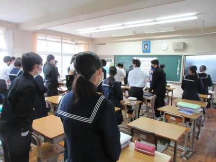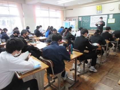 12月9日(金)朝のようす その3 公開日 2022/12/09 更新日 2022/12/09 お知らせ 朝の3年生の教室のようすの続きです。 各教室で、テスト前の対策に頑張る生徒たちの姿が見られました。チャイムが鳴ると気持ちを切り替え、朝の会に臨んでいました。