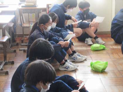 12月9日(金)授業風景 その3 公開日 2022/12/09 更新日 2022/12/09 お知らせ 2年生の保健体育科の授業です。 心肺蘇生法について、このあと、実際にやってみる場面でした。胸部圧迫(心臓マッサージ)とAEDの使い方を知り、いよいよペアでやります。応急処置が必要な時に、必ず、役に立つ学習です。この後、クラス全体で、しっかり取り組めたことでしょう。