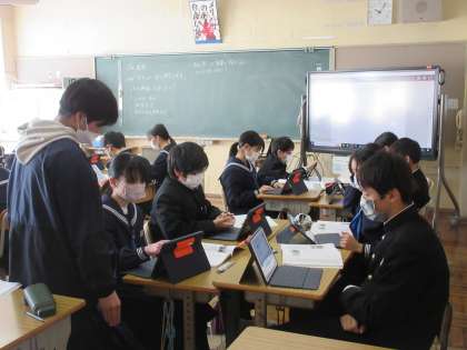 教材文「全ての人に安心・安全な水を」を読み学習をすすめています。自分の思いが結果につながらない時、どうすればよいか・・・について、グループごとに考える1年生。頑張っていました!