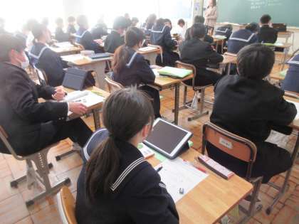「持続可能な食生活のために」という課題のもと、食品ロスのことについて考えていました。学校での給食や家庭で気を付けていることなどを、思い出しながら紹介していました。賞味期限と消費期限の違いなどについても、学習を振り返りながら、考えを交流させていました。