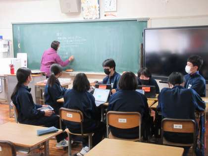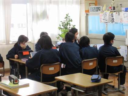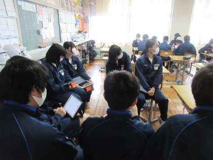 今日は、次からの学習となるサッカーの学習計画を立てています。チームごとに、練習計画を立てています。どんな練習をして試合に臨もうか、みんなで考えています。体育科の授業においても、タブレットが積極的に使われています。