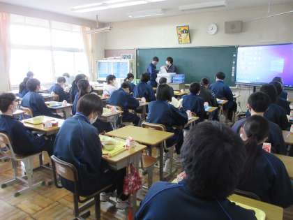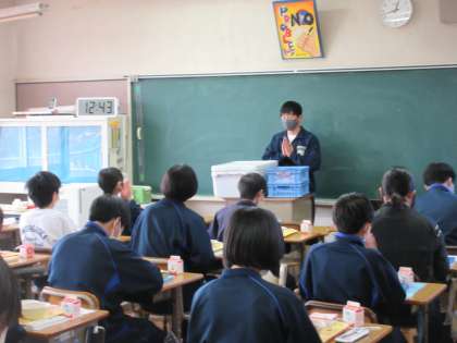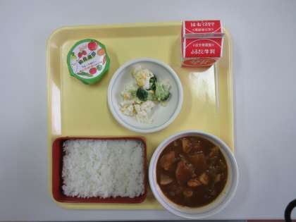 1月27日(金)今日の給食【給食週間献立:カレー】 公開日 2023/01/27 更新日 2023/01/27 お知らせ 今日の給食のメニューは、ごはん・牛乳・根菜チキンカレー・花野菜サラダ・給食週間ゼリー です。 3年6組の給食準備風景を撮影と思い、いつもの時間に教室に向かうと、すでに給食当番を含めて、準備が終わっていました。そして、係の生徒の「いただきます!」で、食べ始めていました。準備の早さ、さすが3年生です。 今日もおいしく給食をいただきました。