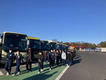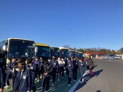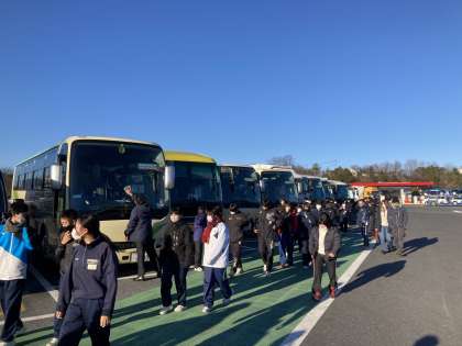 8時20分現在、2年生は、高坂SAに着き、休憩中です。予定通り進んでいます。現在、快晴ですが、赤城山の方は、少し雲もかかっているように感じます。
