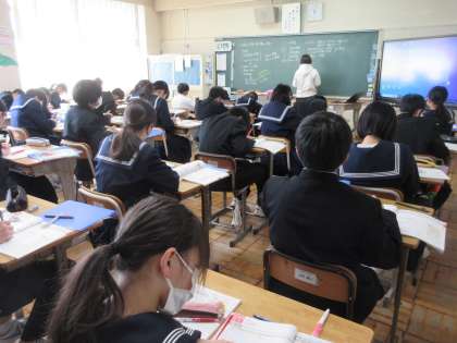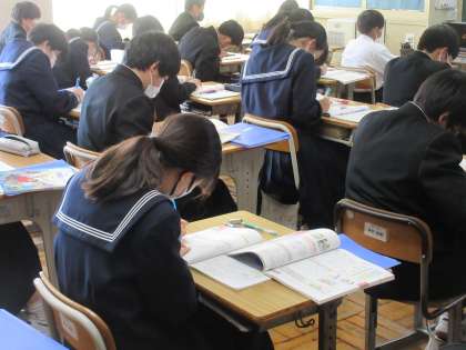 2月3日(金)今日の授業風景 その8 公開日 2023/02/03 更新日 2023/02/03 お知らせ 1年生の保健の授業です。 「異性の尊重と性情報の対処」「心の発達」について学習を進めていました。まさに今、成長が著しい生徒たちに合わせた学習内容です。真剣に担当の先生と課題に取り組む生徒たち。自分と向き合いながら、真剣に学習に取り組んでいました。