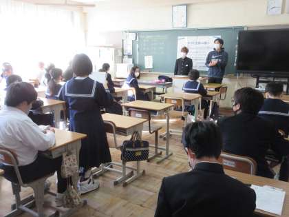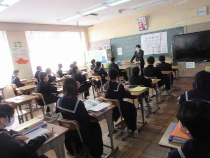 2月6日(月)朝のようす その4 公開日 2023/02/06 更新日 2023/02/06 お知らせ 続いて、1年生の教室も見に行きました。 1年生の教室も、落ち着いた雰囲気の中、テスト前の準備や朝の会が行われていました。 朝の会では、テストに向けての心構えの他、スキー学習直前の話、先週行われた校則検討委員会の話など、大切な話を担任の先生から聞いていました。話を最後までしっかりと聞くことができる1年生。素晴らしいです!