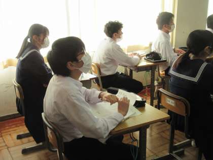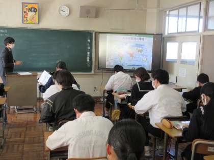 2月6日(月)今日の授業風景 その1 公開日 2023/02/06 更新日 2023/02/06 お知らせ 3年生の社会科の授業です。 入試対策の問題を解き、その後の解説を担当の先生からしてもらっている場面でした。担当の先生から、示される資料や写真を通して、学んだことをもう1度、具体的に振り返ることができています。1問1問を大切にして確認していくことで、理解が深まっています。