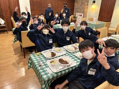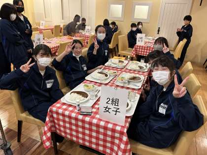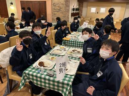 お昼はカレーライスです。朝が早かったので、お腹が空いた子が多いようです。