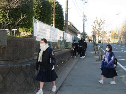 2・3年生は、登校時刻になると、いつも通り正門前を爽やかなあいさつをして通り過ぎ、教室に向かっています。
