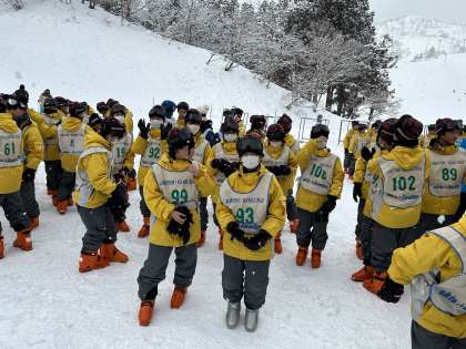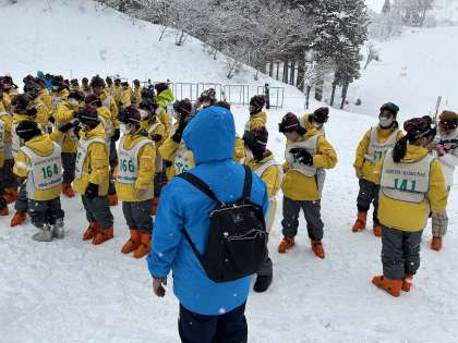 今日はスキーブーツをスムーズに履くことができ、準備万端です。雪が降っていますが、少し太陽も見えています。