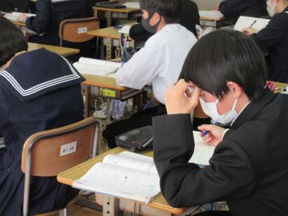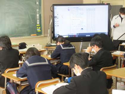 2月9日(木)今日の授業風景 その2 公開日 2023/02/09 更新日 2023/02/09 お知らせ 2年生の数学科の授業です。 箱ひげ図とヒストグラムの関係について、学習を進めています。教科書の資料を熱心に見て、課題を解決しようとする2年生の生徒たち。新たな気付きや発見につながってほしいです。集中して問題に取り組む姿が見られています。