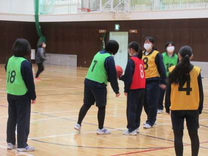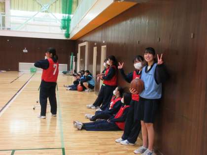 3年生の体育の授業風景の続きです。 グループごとに順番で、試合を楽しんでいます。