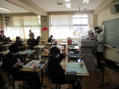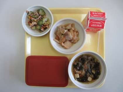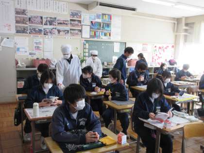 2月9日(木)今日の給食 公開日 2023/02/09 更新日 2023/02/09 お知らせ 今日の給食のメニューは、ごはん・牛乳・いかと大根の煮物・りっちゃんサラダ トマトドレッシング・牛肉とわかめのスープ です。 2年2組の給食準備風景を見に行くと、自分の席に静かに待機している生徒がほとんどで、給食当番の生徒も準備がしやすそうでした。協力体制がばっちりな2年生です。今日もおいしく給食をいただきました。