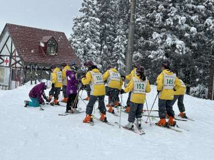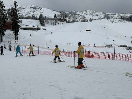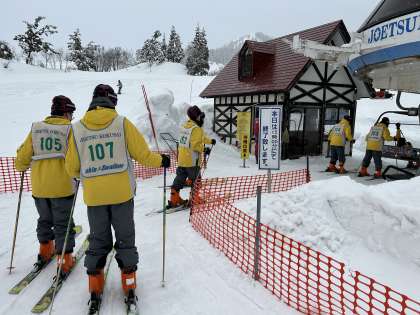 午後はいくつかのグループは山頂まで2本のリフトを乗り継ぎ、緩やかな林間コースを滑りました。
