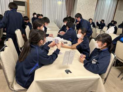 自由レクタイム 公開日 2023/02/09 更新日 2023/02/09 お知らせ 夕食後、約1時間、夕食会場を開放して、学級関係なく遊べる時間を設けました。おしゃべりをしたりトランプをしたりして楽しみました。