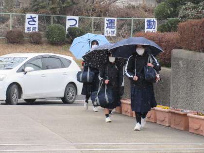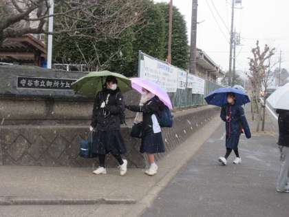 2・3年生は、雪の中での登校ですが、いつも通り、元気よくあいさつを正門を通り過ぎていきました。
